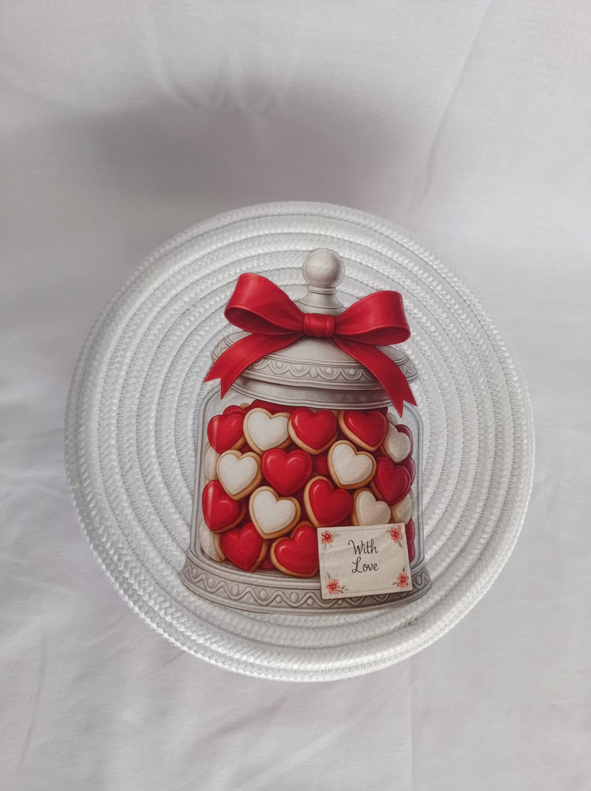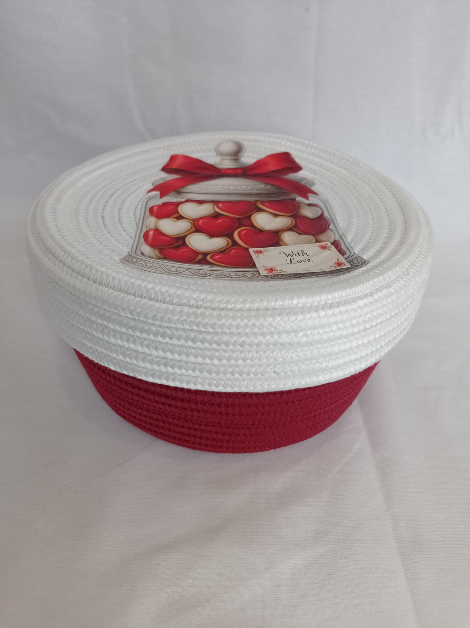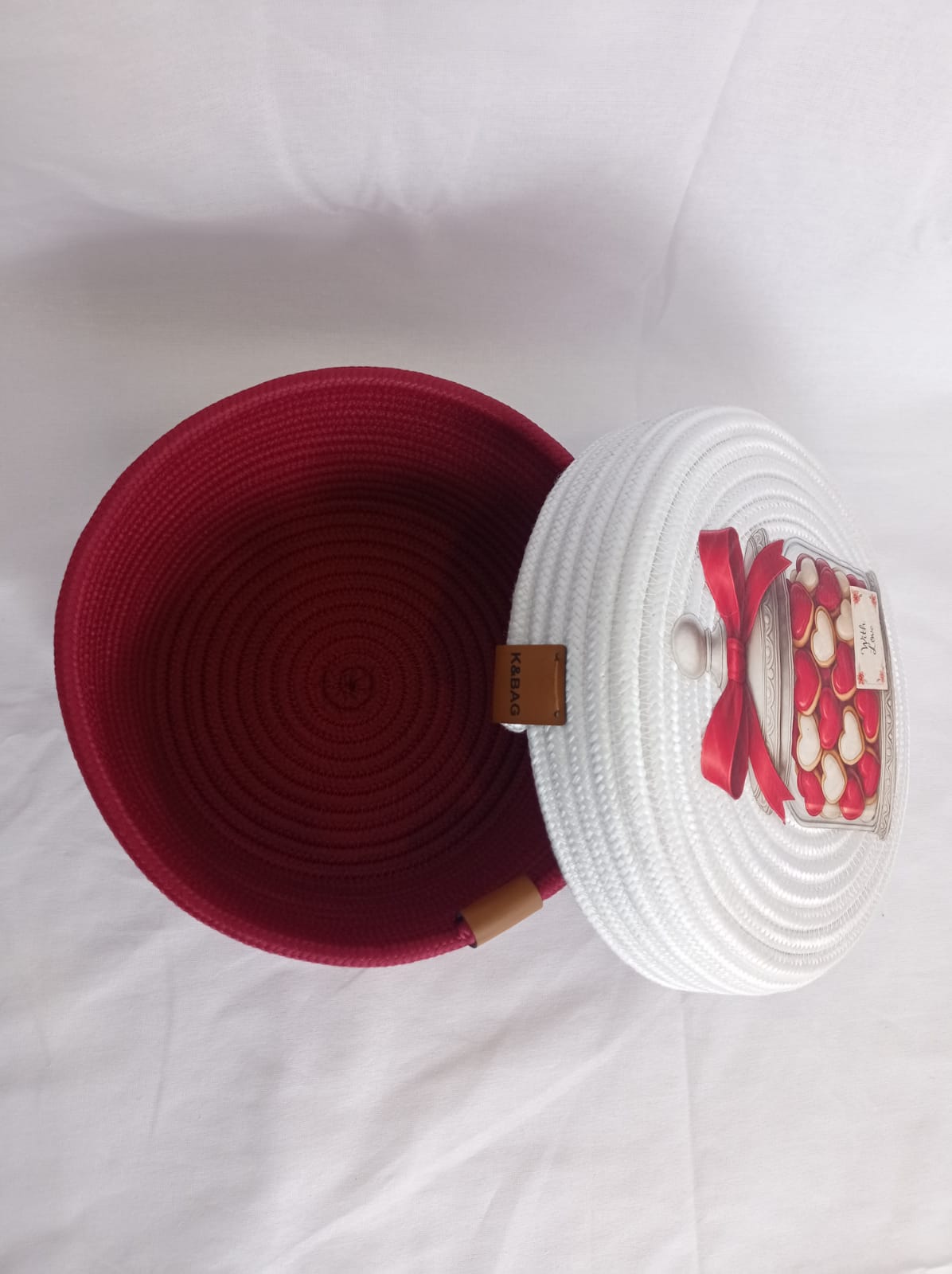 Jüp ipten yapılmış çok amaçlı sepet.iç çapı 22 cm. Yükseklik kapaksız 13 cm,yükseklik kapaklı 14 cm