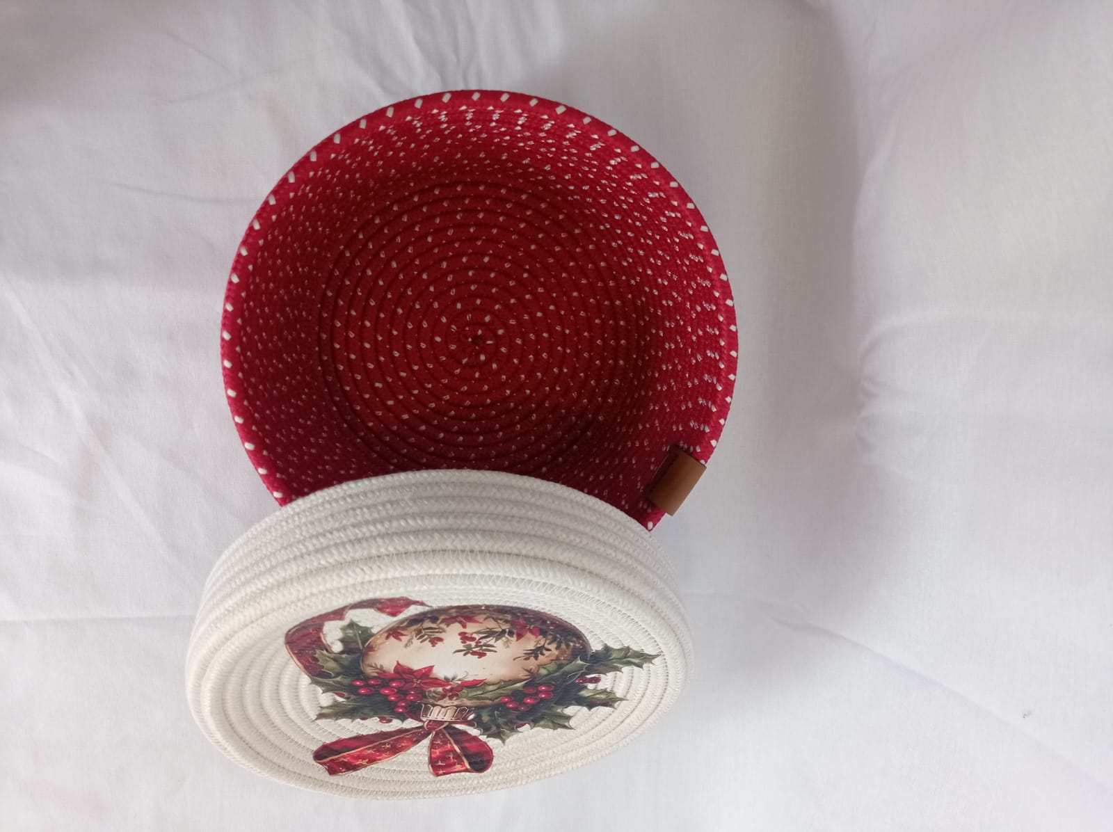 jüt üpten yapılmış çok amaçlı kapaklı sepet.iç çapı 23 cm,yükseklik kapaksız 13.5 cm, kapaklı yükseklik 14.5 cm
