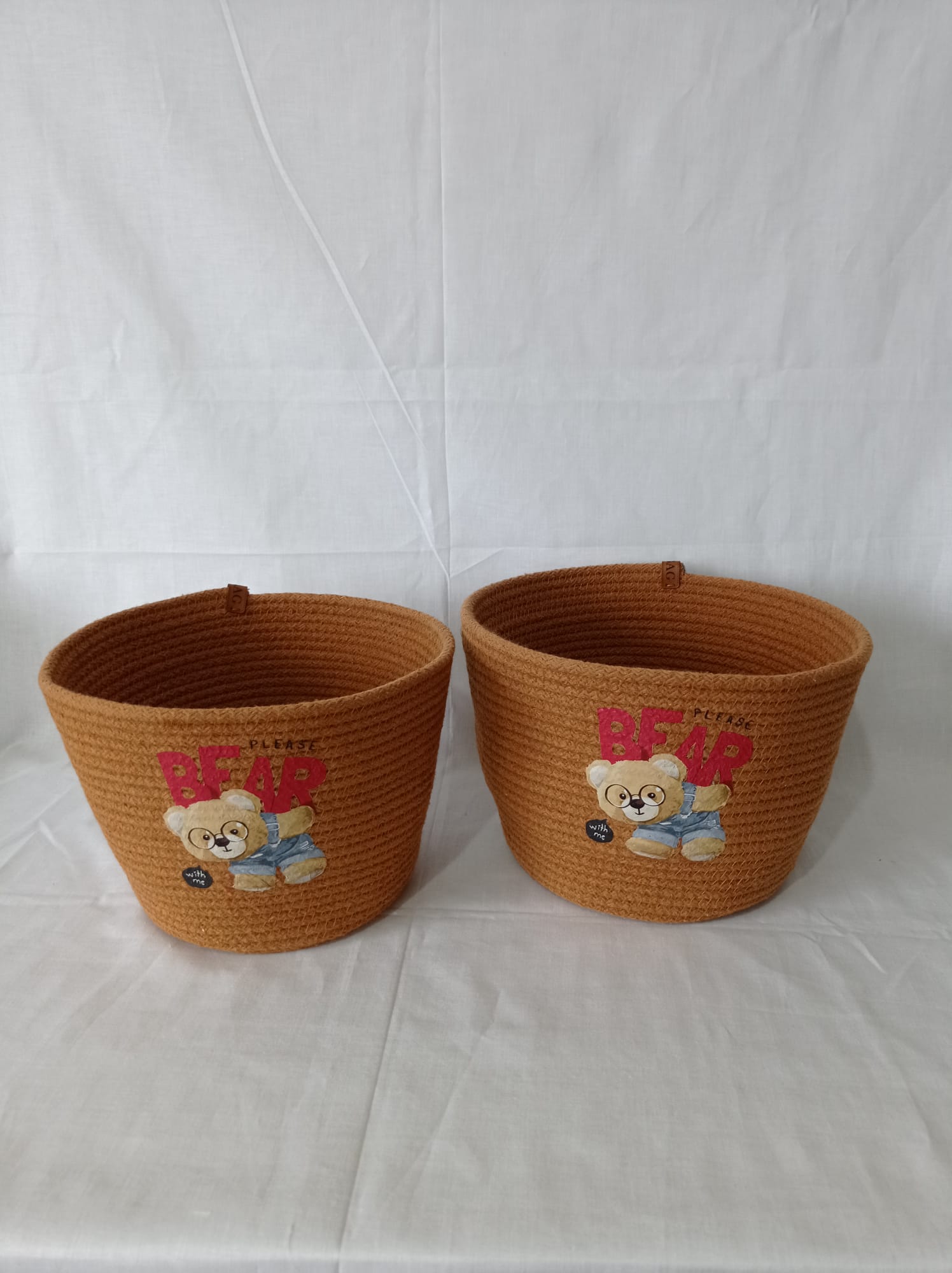 Dijital transfer baskılı kahverengi pamuklu kordon ipten ikili set Büyük boy çap 24 cm yükseklik 17 cm. Küçük boy çap 23 cm yükseklik 16 cm